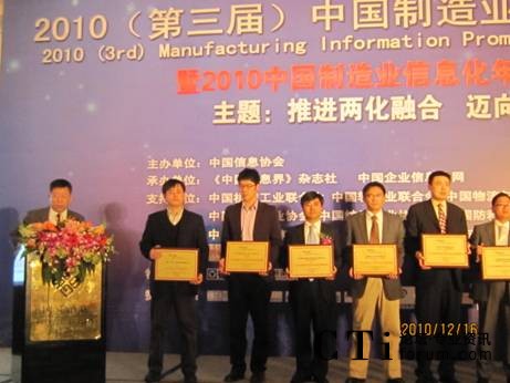 CTI論壇(ctiforum)12月27日消息(記者 潘婷婷):12月16日,由中國信息協(xié)會聯(lián)合我國十幾家制造業(yè)行業(yè)協(xié)會共同舉辦的“2010(第三屆)中國制造業(yè)信息化推進(jìn)大會暨中國制造業(yè)信息化年度頒獎盛典”在北京成功舉行。中國信息協(xié)會會長盧時(shí)徹、中國機(jī)械工業(yè)聯(lián)合會特別顧問、國家信息化專家咨詢委員會委員朱森第、工業(yè)和信息化部信息化推進(jìn)司安筱鵬等領(lǐng)導(dǎo)出席此次活動并發(fā)表演講。會上,八百客獲得“2010年度CRM領(lǐng)軍企業(yè)”大獎,至此,八百客已經(jīng)斬獲“中國云計(jì)算領(lǐng)軍企業(yè)”和“CRM領(lǐng)軍企業(yè)”雙料大獎,為2010年畫上了圓滿的句號。