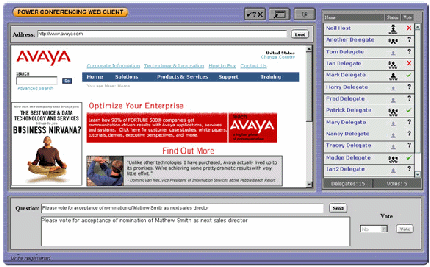 作為電話會(huì)議的補(bǔ)充,會(huì)議主席可以建立基于web的應(yīng)用。通過(guò)這樣的web接口,會(huì)議主席和與會(huì)人員不僅看到與會(huì)人員的狀態(tài),還可以設(shè)置聽眾只聽,聽和說(shuō),可以看到web界面的權(quán)限。web
