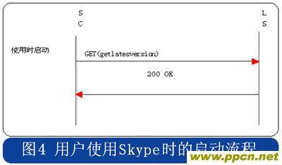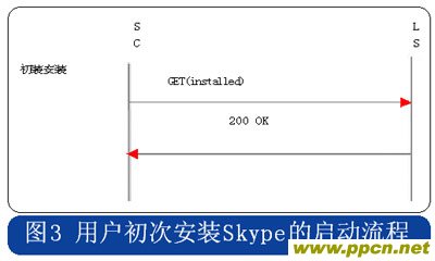 Skype的用戶終端啟動時,采用HTTP協(xié)議連接到注冊服務器,用戶初次安裝的啟動流程中攜帶“installed”的參數(shù),使用時啟動流程則在消息中攜帶“getlatestversion”參數(shù),具體流程分別見圖3和圖4。