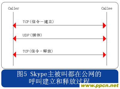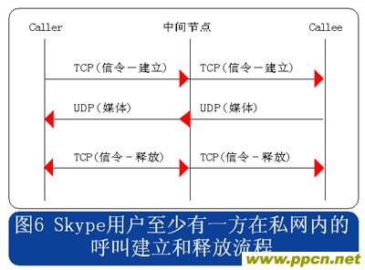 從上述流程圖可見,Skype的呼叫信令都采用TCP封裝,而媒體流則使用UDP封裝,當有任何一方用戶位于限制UDP包的防火墻內時,媒體流就會采用TCP封裝。另外當Skype用戶至少有一方位于私網(wǎng)內時,所有的信令和媒體消息都經過一個或多個中間節(jié)點轉發(fā)。此時無需擔心用戶通話的媒體流因為經過中間節(jié)點轉發(fā)而被竊聽,因為Skype采用了對消息進行端到端加密的機制。