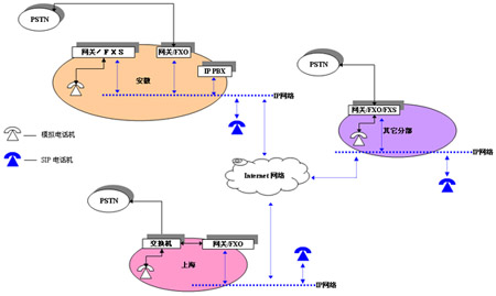 建立起VoIP后,可節(jié)省總分支機構之間的國際、國內長途、農話。各點之間互發(fā)傳真。并且在將來和總部之間IP語音網絡互連,形成覆蓋全國的IP電話網絡。IP語音網絡除了提供集團內部辦公、業(yè)務和技術支持通話以外,也適應數據集中后,各種投訴電話、呼叫中心等用戶電話的接入,客戶和商戶不必撥打電話到總部,只需撥打本地IP語音網關,大大降低運營成本。