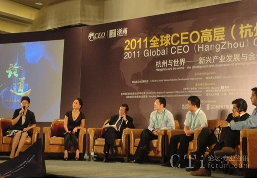 CTI論壇(ctiforum)9月21日消息(記者 張潔):9月13日下午,2011全球CEO高層(杭州)論壇在凱悅大酒店舉行。本次論壇由聯(lián)合國工業(yè)發(fā)展組織,杭州市人民政府主辦,論壇以“杭州與世界:新興產(chǎn)業(yè)發(fā)展與合作”為主題,圍繞浙江企業(yè)在新興產(chǎn)業(yè)轉(zhuǎn)型創(chuàng)新過程中的關(guān)注點即新興產(chǎn)業(yè)技術(shù)分享、商業(yè)模式探討以及融資渠道開拓等三方面,攜手幾十位位國內(nèi)外著名CEO共同探討解決之道,并借助會議的延展尋求可行之道。