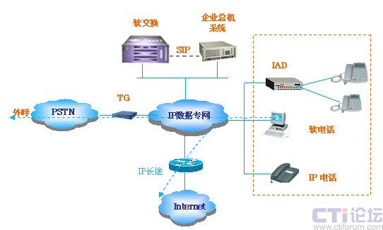 終端可以通過IAD將普通電話接入,可以是IP電話,還可以是軟電話。軟終端尤其適合出差在外的人員,只要電腦聯(lián)網(wǎng)即可撥打所需電話,通話資費(fèi)均為0。