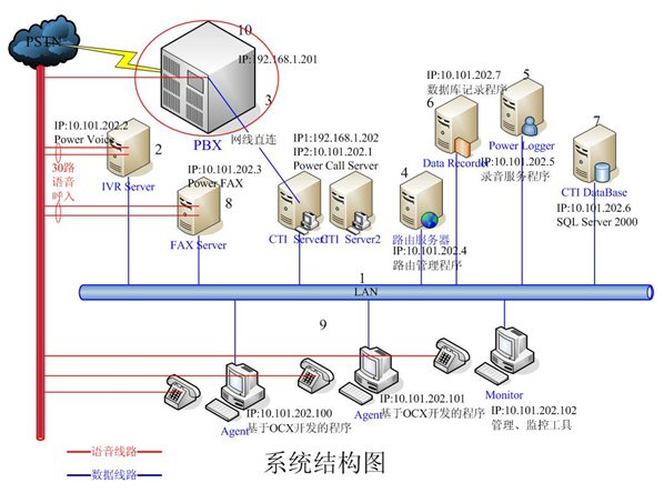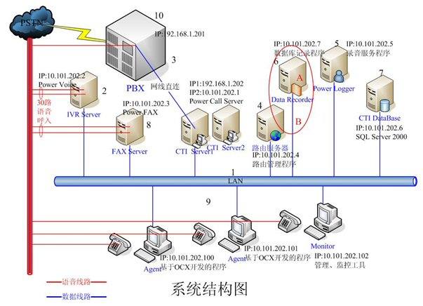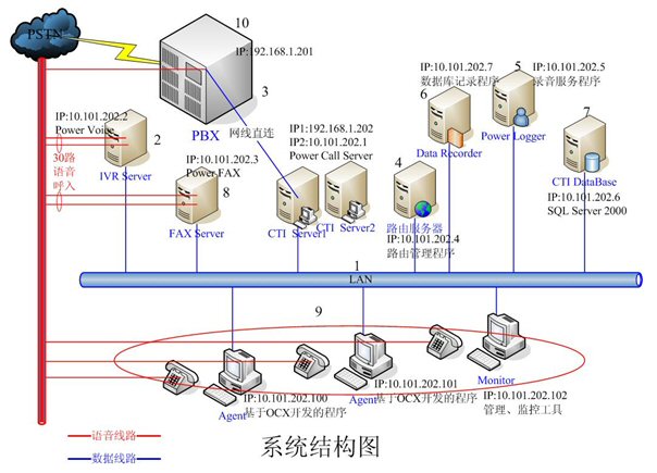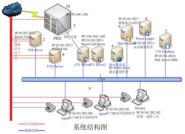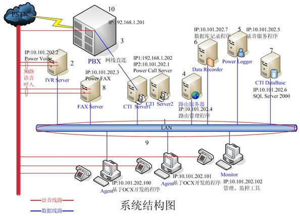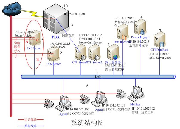 - IVR Server和FAX Server采用高品質(zhì)的工控機,配置和軟件環(huán)境基本一樣。每臺機器均有30路語音接入,分別裝有一套Power