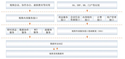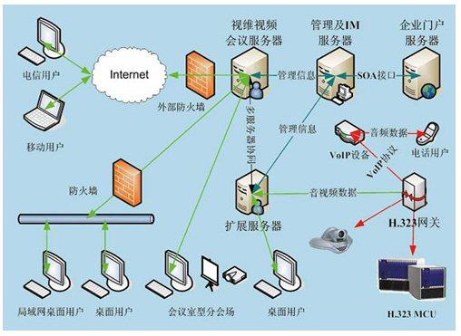 視維系統(tǒng)是一個基于IP網(wǎng)絡(luò)的綜合業(yè)務(wù)通訊平臺,通過多網(wǎng)絡(luò)接入方式實現(xiàn)網(wǎng)通、電信、聯(lián)通等用戶間高速互通;通過H.323模塊將企業(yè)內(nèi)部原有的硬件設(shè)備與視維系統(tǒng)鏈接起來,有效的節(jié)約了投資;其他如SIP模塊,短信模塊,固網(wǎng)電話接入等都可以根據(jù)用戶需要進行擴展。視維系統(tǒng)可以支持分布式視頻服務(wù)器集群,可利用企業(yè)內(nèi)部網(wǎng)絡(luò)或者互聯(lián)網(wǎng)構(gòu)建超大規(guī)模企業(yè)綜合通訊平臺。基于“面向服務(wù)體系架構(gòu)(SOA)”設(shè)計架構(gòu),實現(xiàn)很靈活地方便地與其業(yè)務(wù)系統(tǒng)如OA,HR,CRM,