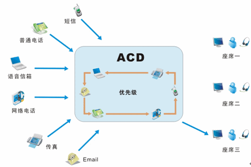 我們目前接入的媒體有很多,不再是傳統(tǒng)的單一電話接入方式,還包括網(wǎng)絡(luò)呼入、E-mail呼入,短信、留言等,所有的媒體接入都通過(guò)統(tǒng)一的排隊(duì)路由,以最優(yōu)化的策略分配給最適合的座席人員;并且,不同的媒體類(lèi)型具有不同的優(yōu)先級(jí),ACD(自動(dòng)話務(wù)分配)根據(jù)優(yōu)先級(jí)和設(shè)定的排隊(duì)算法,自動(dòng)實(shí)現(xiàn)媒體的統(tǒng)一智能路由。