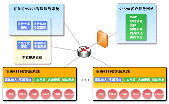 分布式座席的本質是分布式接入。由于95598客戶服務中心系統(tǒng)基于純IP環(huán)境,對業(yè)務人員的接入采用先進的B/S結構,業(yè)務人員只需通過計算機上的瀏覽器就可以訪問應用服務器,瀏覽各個功能窗口,在窗口內執(zhí)行相應的操作,完成相應的業(yè)務處理。同時,在采用了VoIP技術和分布式IP技術之后,座席的話路不再基于PSTN公共交換網絡,而是直接基于IP網絡。這樣對于話路的物理布局不再受地域和設備環(huán)境的限制,只要接入在同一網絡資源中,就可以傳遞話路語音。綜合上述兩點,就完全實現(xiàn)了分布式布局的概念,讓業(yè)務人員擺脫地域的限制。
