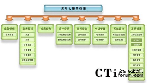 老年人服務熱線系統是為老年人提供援助服務的電話呼叫平臺,利用統一的特服號碼接入,實現統一服務流程和服務標準,服務內容包括咨詢服務、求助報警服務、預定服務(預定生活服務、新聞送達、導引服務)、老年人定位導向服務、語音讀報服務等等。老年人服務熱線系統將通過呼叫中心、手機短信息等多種接入手段相結合的方式向廣大老年人提供7×24小時服務。即:工作時間實現人工座席及自動語音受理;非工作時間實現自動語音受理及值班座席受理。