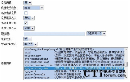 可以根據(jù)其自身業(yè)務(wù)的特點(diǎn),設(shè)定多個處理呼入電話的隊(duì)列。針對每個隊(duì)列,都可以設(shè)定固定接聽坐席和動態(tài)接聽坐席,以便根據(jù)來電情況,靈活調(diào)整某個隊(duì)列接聽話務(wù)員的人數(shù)。用戶還可以方便的設(shè)定每個隊(duì)列的等候音樂,隊(duì)列位置提示以及溢出路由。針對隊(duì)列中的各個坐席,用戶還可以靈活設(shè)定振鈴的策略。
