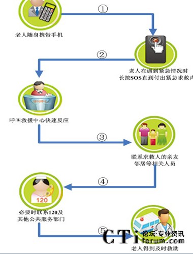 老人使用不記任何電話號,按下紅鍵(盲人按粗糙鍵)就可發(fā)送緊急求救信號;按下綠鍵可以發(fā)送求助信號,求助信息根據(jù)用戶需要在同一時間發(fā)送到信息服務(wù)中心、社區(qū)網(wǎng)格管理員、老人指定親屬、物業(yè)公司、及有關(guān)部門,可實現(xiàn)完整信息獲取和快速響應(yīng),啟動多方通話進(jìn)行緊急調(diào)度,保障老人的生命財產(chǎn)安全。