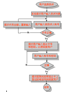 在處理用戶(hù)投訴時(shí),要求對(duì)醫(yī)院所有服務(wù)人員分配代碼。用戶(hù)投訴時(shí)按照服務(wù)代碼進(jìn)行投訴。同時(shí),醫(yī)院將對(duì)所有投訴用戶(hù)進(jìn)行回復(fù)。如通告處理結(jié)果,向用戶(hù)道歉等。對(duì)用戶(hù)回復(fù)時(shí),將按照用戶(hù)在申請(qǐng)就診卡時(shí)留下的電話(huà)號(hào)碼進(jìn)行回復(fù)。這種也可以促使用戶(hù)留下真實(shí)的電話(huà)號(hào)碼。用戶(hù)可以到醫(yī)院電話(huà)號(hào)碼。