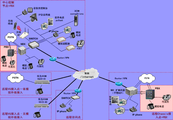 ②.統(tǒng)一的分支機構電話平臺,可以支持任何數(shù)據骨干網(WAN)技術,包括DDN、幀中繼、VPN、xDSL等。3COM NBX 系統(tǒng)也可以在無線局域網上運行。