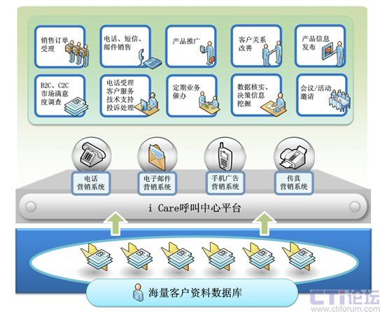 依托先進CTI技術,基于現(xiàn)代服務營銷理念,系統(tǒng)實現(xiàn)銷售線索挖掘、電話銷售跟蹤、銷售機會孵化、市場機會勘察、B2B/B2C市場調(diào)查、會議邀請、客戶關系改善、定期業(yè)務催辦等多種電話營銷服務。