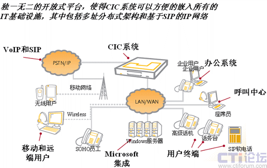 對(duì)于企業(yè)而言,CIC是一套基于IP的完整的通信解決方案,與傳統(tǒng)PBX電話系統(tǒng)不同的是,CIC通過一個(gè)單一的軟件平臺(tái),可以將語音,數(shù)據(jù)和企業(yè)員工有機(jī)的聯(lián)系起來,而傳統(tǒng)的PBX電話系統(tǒng)只能提供語音服務(wù),無法和現(xiàn)今流行的IP信息系統(tǒng)相結(jié)合。