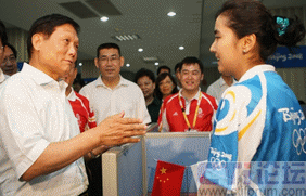 圖四 北京奧組委志愿者部部長(zhǎng)向優(yōu)秀志愿者辦法證書(shū)。
