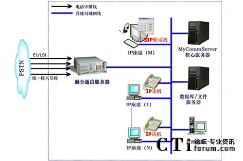 圖 1 MyComm 純 IP 電話與語音解決方案網絡結構示意圖