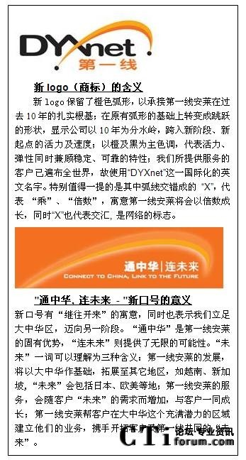 CTI論壇(ctiforum)08月20日消息: 知名網(wǎng)絡(luò)服務(wù)商第一線安萊,十年間憑借經(jīng)驗(yàn)豐富的團(tuán)隊,靈活的服務(wù)、可靠的網(wǎng)絡(luò)系統(tǒng)等,遙遙領(lǐng)先于眾多競爭對手,傲然屹立于大中華地區(qū)。目前,正值第一線安萊十周年慶之際,全新的企業(yè)商標(biāo)和“通中華.連未來”的新口號也向大眾展示。公司提出將幫助客戶實(shí)現(xiàn)“立足大中華,拓展全世界”的愿景。