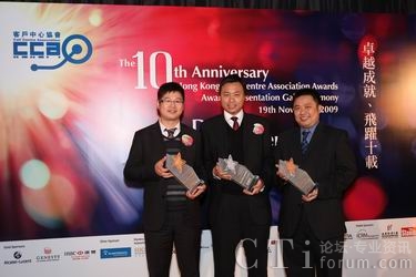 CTI論壇(ctiforum)11月20日消息(記者 張塵):11月19日晚,大中華區(qū)領先信息通訊技術服務商第一線安萊于2009年香港客戶中心大獎評選晚會中,再次囊括三項大獎:最佳外包客戶中心 (呼入)、最佳華南客戶中心 (100席以上) 及最佳離岸客戶中心。加上上個月由中國呼叫中心協(xié)會CNCCA授予的“2009中國(亞太)最佳外包呼叫中心”及全球IP通訊聯(lián)盟所頒發(fā)的“最佳外包呼叫中心供應商(國內)”獎,第一線安萊在這個金秋時節(jié)可謂收獲頗豐。第一線安萊IP呼叫中心再次獲得業(yè)界的認同,這也體現(xiàn)了第一線安萊在該項產品及服務方面擁有領先的優(yōu)勢,通過持續(xù)進步,為客戶創(chuàng)造有利的營運模式,也有助于奠定企業(yè)服務的標準,再度奪獎乃實至名歸。