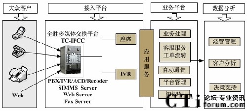 杭州全勝通訊有限公司自主研發(fā)的全勝多媒體IP呼叫中心平臺(TC-IPCC),是基于交換機級別的純IPCC平臺。該平臺集CTI、IVR、FAX、SMS、Email、錄音監(jiān)控、電話會議、統(tǒng)一智能路由、呼出管理等功能于一體,可用于構建各類聯絡中心、自動語音系統(tǒng)、熱線電話、會議電話、電話銷售等系統(tǒng),輕松滿足各行業(yè)客戶、合作伙伴個性化建設需求。
