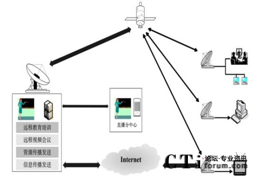 衛(wèi)星通信系統(tǒng)能實(shí)現(xiàn)組播、多點(diǎn)傳送和多媒體通信,支持多種媒體內(nèi)容的高速寬帶傳輸,時(shí)單向、雙向交互式的現(xiàn)代遠(yuǎn)程教育培訓(xùn),音視頻節(jié)目的實(shí)時(shí)播出和傳送,多媒體培訓(xùn)資源和數(shù)據(jù)的推送,音視頻、數(shù)據(jù)同步交互的遠(yuǎn)程視頻會議,信息資源的傳播和發(fā)送。