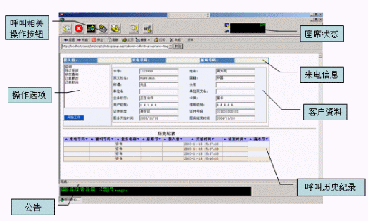 普通座席支持注冊、注銷、摘機、掛機、前處理、后處理、小休、取消小休、撥空閑座席、轉移IVR、呼叫保持、外撥、發(fā)起三方會議。班長席支持監(jiān)聽。