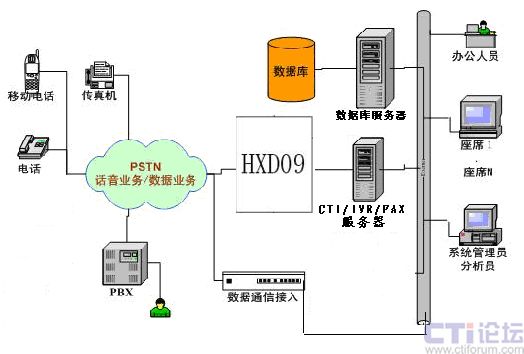 天津神州浩天呼叫中心系統(tǒng)(以下簡稱“系統(tǒng)”)是根據(jù)天津神州浩天公司業(yè)務(wù)需求而設(shè)計(jì),是以恒訊達(dá)HXD09融合通訊系統(tǒng)、CTI技術(shù)、計(jì)算機(jī)網(wǎng)絡(luò)集成為核心的智能語音通信平臺(tái),它將交換技術(shù)、CTI技術(shù)、網(wǎng)絡(luò)技術(shù)有機(jī)的結(jié)合起來,和企業(yè)的管理、企業(yè)的文化、企業(yè)的工作流程通過這個(gè)平臺(tái),以信息技術(shù)的方式加以實(shí)施。