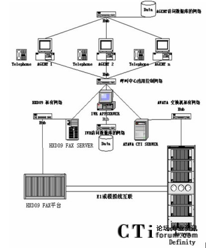 根據(jù)客服系統(tǒng)的容量,坐席多特點,一般都采用國外品牌交換機做為接入設備,用HXD09設備作FAX或IVR系統(tǒng)?头臉I(yè)務主要為語音和傳真。HXD09系統(tǒng)在傳真和語音處理處理上在國內(nèi)產(chǎn)品的技術和價格上都有巨大優(yōu)勢。