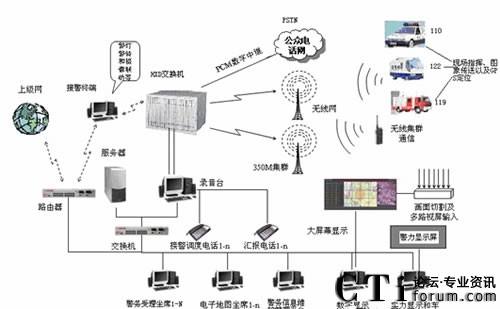 “三臺合一” 接處警系統(tǒng)是一個統(tǒng)一高效、反應靈敏,具有極高應急能力和科技水平的復雜系統(tǒng)。這一系統(tǒng)以計算機網(wǎng)絡系統(tǒng)為基礎,以有線和無線通信系統(tǒng)為手段,以HXD09接處警系統(tǒng)為核心,集成了地理信息系統(tǒng)(GIS)、衛(wèi)星定位系統(tǒng)(GPS)、大型數(shù)據(jù)庫系統(tǒng)、計算機輔助決策系統(tǒng)、大屏幕顯示系統(tǒng)等,體現(xiàn)了高科技與公安業(yè)務的完美結(jié)合。廣東恒訊達通訊技術(shù)有限公司的可編程語音交換機HXD09既能滿足日常信息處理的需要,同時又能在緊急情況下進行實時指揮。