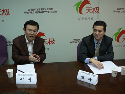 主持人:剖析行業(yè)發(fā)展趨勢(shì),體察企業(yè)e化需求,各位網(wǎng)友下午好,感謝大家關(guān)注本期的e領(lǐng)袖對(duì)話。自2002年開(kāi)始,CRM在中國(guó)取得了快速的發(fā)展,但在人們欣慰的同時(shí)還有一個(gè)現(xiàn)實(shí)讓CRM的概念可能人盡皆知,但CRM的理念卻遠(yuǎn)沒(méi)有深入人心。另外,最近一頓時(shí)間,在領(lǐng)域內(nèi)舉足輕重人物的言行以及一些知名CRM企業(yè)的變數(shù),讓人們對(duì)CRM的未來(lái)有了各種各樣的猜測(cè)和顧慮。那么CRM到底會(huì)有一個(gè)什么樣的未來(lái),CRM為會(huì)帶給中國(guó)的企業(yè)用戶一個(gè)什么樣的未來(lái),今天我們對(duì)話請(qǐng)到的是在CRM領(lǐng)域相當(dāng)資深的兩位嘉賓,看看他們會(huì)給我們一個(gè)什么樣的答案。今天這個(gè)話題引起了網(wǎng)友濃厚的興趣,在進(jìn)來(lái)之前很多網(wǎng)友已經(jīng)提出了問(wèn)題,今天會(huì)把網(wǎng)友的問(wèn)題結(jié)合我們?cè)掝}一起進(jìn)行,請(qǐng)大家隨時(shí)關(guān)注,首先介紹一下今天來(lái)到對(duì)話的兩位嘉賓。一位是TurboCRMCEO薛峰。這位是獨(dú)立咨詢(xún)實(shí)施顧問(wèn)葉開(kāi)老師。首先歡迎兩位到來(lái),今天話題可能跟之前不同,之前會(huì)了我們?cè)掝},隨后結(jié)合我們網(wǎng)友問(wèn)題來(lái)聊。但是今天網(wǎng)友的問(wèn)題和今天的主題比較切合,所以就網(wǎng)友問(wèn)題和我們?cè)掝}結(jié)合起來(lái)進(jìn)行,今天把首發(fā)交給網(wǎng)友,Turbo算是國(guó)內(nèi)最大的嗎?先請(qǐng)葉老師回答一下。