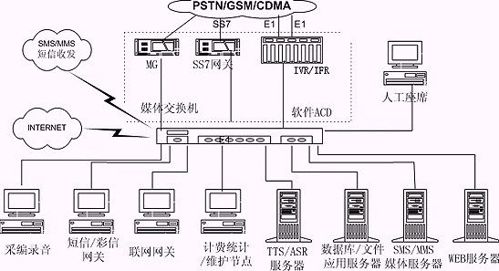 FOCUSTAR SBGM 彩話業(yè)務(wù)系統(tǒng)采用包含中繼、語音/傳真/座席功能卡/IP Gateway/數(shù)據(jù)媒體網(wǎng)關(guān)的交換機作為與公眾電話網(wǎng)的接口,實現(xiàn)自動呼叫控制協(xié)議及編程接口完成交換控制,是一個容量伸縮性大、數(shù)據(jù)處理能力強、功能齊全、服務(wù)手段豐富的電信綜合業(yè)務(wù)平臺。