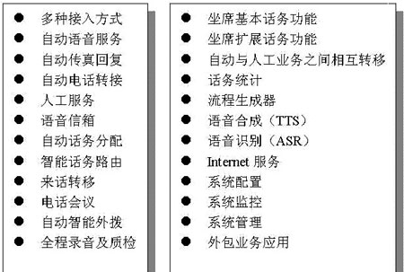 1. 接入及交換處理系統(tǒng)。此部分重點(diǎn)考慮用戶的呼叫接入和呼出、呼叫轉(zhuǎn)接處理需求,分析提供電話、傳真、信函、Web、E-mail、WAP、短信、視頻等方式的接入選擇?紤]分析用戶呼叫要求和數(shù)據(jù),將該數(shù)據(jù)傳遞給業(yè)務(wù)處理和業(yè)務(wù)管理系統(tǒng),同時(shí)接收業(yè)務(wù)處理和業(yè)務(wù)管理系統(tǒng)的交換請(qǐng)求,對(duì)各種電話交換資源、語(yǔ)音資源、傳真資源、坐席資源等進(jìn)行統(tǒng)一管理和調(diào)度分配,進(jìn)行呼叫的排隊(duì)和交換。它包括PBX/ACD (自動(dòng)呼叫分配)、IVR(交互語(yǔ)音應(yīng)答)、CTI、傳真系統(tǒng)、短信平臺(tái)、坐席軟電話、錄音、呼出系統(tǒng)、ICC(Internet呼叫中心)等子系統(tǒng)。