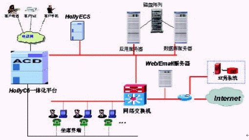 中小型呼叫中心平臺(tái)的配置將大大簡(jiǎn)化,除了核心接入設(shè)備HollyC6一體機(jī)外,根據(jù)業(yè)務(wù)的具體情況配置1-2臺(tái)PC服務(wù)器,安裝HOLLYECS軟件實(shí)現(xiàn)呼叫控制和處理(CTI、IVR、錄音)等功能。這樣將大大減少呼叫中心設(shè)備,使系統(tǒng)更緊湊、更高效的運(yùn)轉(zhuǎn),建設(shè)成本也將大大降低、合理保護(hù)企業(yè)投資。
