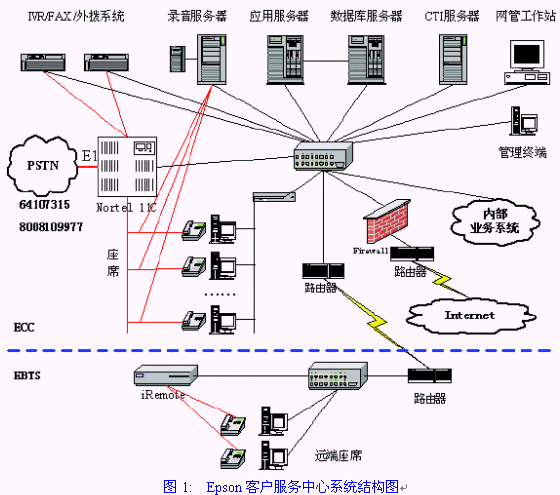 系統(tǒng)承建完成后,把EPSON公司的售前800電話和售后電話整合在一起,用戶可以撥打統(tǒng)一的800電話完成說有的咨詢、投訴工作。因?yàn)橄到y(tǒng)使用了HOLLYCRM(合力金橋軟件)公司的CTI產(chǎn)品-HollyContact3.0,它支持先進(jìn)的路由方式,可以讓客戶電話路由到最合適的話務(wù)員接聽,提高了工作效率和服務(wù)質(zhì)量。系統(tǒng)采用了先進(jìn)的B/S結(jié)構(gòu),這樣各地市辦事處和維修中心通過愛普生公司內(nèi)部網(wǎng)路被緊密的連接在了一起,客服中心受理用戶投訴或者需求信息后可以直接給各地市辦事處和維修中心派發(fā)工單。