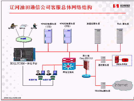 采用HOLLYCRM(合力金橋軟件)公司的HollyC6呼叫中心解決方案后,將遼河油田通信公司和客戶的多種接入溝通渠道進(jìn)行了整合,真正實(shí)現(xiàn)了電話、傳真、電子郵件、網(wǎng)絡(luò)等多媒體的接入方式。拓展了通信公司和客戶的溝通渠道,能夠?yàn)榭蛻籼峁┒喾N途徑更好的為更廣大范圍的服務(wù)和管理。