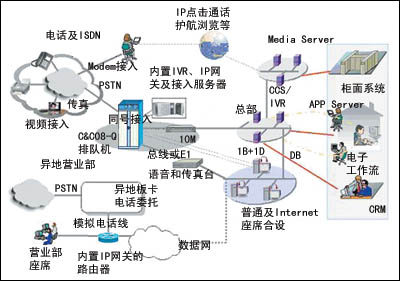 E號(hào)通第一期32座席,集中為全國(guó)用戶(hù)提供服務(wù),以?xún)?nèi)置在排隊(duì)機(jī)的IP網(wǎng)關(guān)為中心搭建的IP語(yǔ)音網(wǎng)解決異地接入問(wèn)題,節(jié)省了帶寬,降低了運(yùn)營(yíng)費(fèi)用。WECC(Web集成呼叫中心)為網(wǎng)上交易用戶(hù)提供多種交互方式:IP點(diǎn)擊通話(huà)、文字交談、護(hù)航瀏覽等,解決了在線服務(wù)問(wèn)題;強(qiáng)大的呼出功能模塊,提供了定制和主動(dòng)式服務(wù);同時(shí),內(nèi)置在排隊(duì)機(jī)內(nèi)部的IVR,語(yǔ)音質(zhì)量完美,響應(yīng)速度快。該方案大規(guī)模的集中接入整合了資源,方便了管理,可平滑擴(kuò)展至3萬(wàn)中繼以上。E號(hào)通是國(guó)通證券系統(tǒng)內(nèi)外資源的一次大規(guī)模、高層次的有效整合。首先它整合了營(yíng)業(yè)部分散的資源,將多種媒體的接入集中到中心,在股民享受更高層次和便捷的服務(wù)同時(shí),券商自身也降低了運(yùn)營(yíng)及管理成本。其次國(guó)通通過(guò)E號(hào)通整合了國(guó)通在市場(chǎng)研究、行業(yè)研究 、經(jīng)紀(jì)業(yè)務(wù)、投行業(yè)務(wù)、電子商務(wù)等領(lǐng)域的優(yōu)勢(shì)資源,以及與銀行合作帶來(lái)的外部資源,形成了具有國(guó)通特色的、集證券、銀行多種個(gè)性化服務(wù)內(nèi)容于一身金融服務(wù)“超市”。