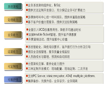 從服務(wù)內(nèi)容來看,聯(lián)絡(luò)中心建立了一個統(tǒng)一面向客戶的綜合性服務(wù)平臺,實現(xiàn)涵蓋公司各項主要產(chǎn)品和業(yè)務(wù)的專業(yè)信息咨詢與交易功能,并實現(xiàn)人工服務(wù)、業(yè)務(wù)咨詢、業(yè)務(wù)處理、投訴處理、建議受理、預約服務(wù)、客戶回訪等一體化的話務(wù)處理與管理,為客戶提供多樣化、全方位、個性化的接入方式與服務(wù)內(nèi)容。