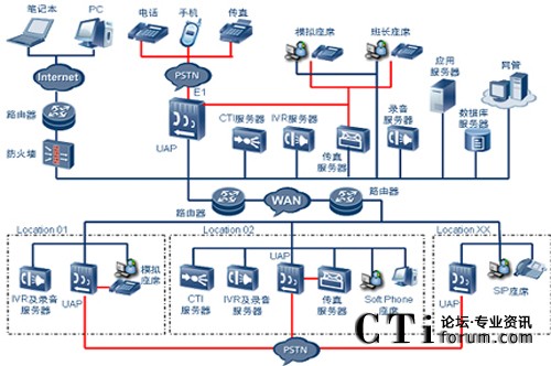 華為多媒體聯(lián)絡(luò)中心提供完善的分布式組網(wǎng)及集中式組網(wǎng)功能,可以提供分布式接入、分布式IVR、分布式錄音系統(tǒng)、分布式坐席、分布式傳真系統(tǒng)及網(wǎng)絡(luò)呼叫中心技術(shù)。如果各個(gè)分支機(jī)構(gòu)有較多本地化業(yè)務(wù)需求的時(shí)候,各個(gè)分支機(jī)構(gòu)只需要再配置一臺CTI服務(wù)器,就可以升級成完整的聯(lián)絡(luò)中心系統(tǒng),可以單獨(dú)開展豐富的個(gè)性化業(yè)務(wù)。如果總部再安裝一套網(wǎng)絡(luò)呼叫中心,則可以實(shí)現(xiàn)聯(lián)絡(luò)中心的互連,即網(wǎng)絡(luò)呼叫中心。
