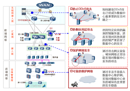 隨著各種黑客工具的推陳出新,數(shù)據(jù)中心面臨的安全威脅越來越大。數(shù)據(jù)中心網(wǎng)絡(luò)的安全必須從多個維度進(jìn)行設(shè)計(jì)。