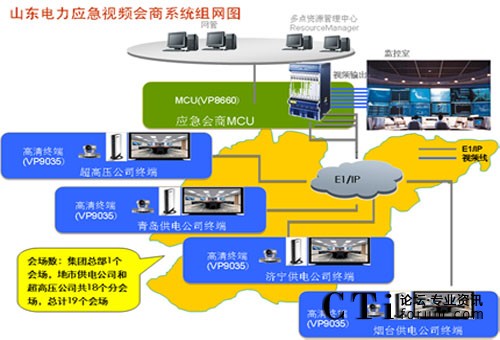 山東電力集團(tuán)公司為了開展應(yīng)急視頻會商業(yè)務(wù),需建設(shè)一套覆蓋集團(tuán)總部、地市供電公司、超高壓公司等19個單位的視訊系統(tǒng),并能夠與國家電網(wǎng)、地市供電公司已有系統(tǒng)實現(xiàn)音、視頻的互通。