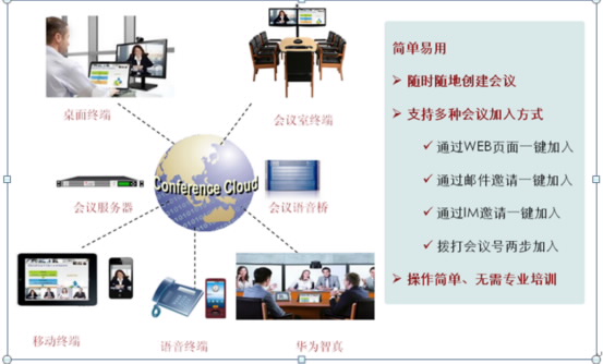 華為eSpace協(xié)同會議解決方案從企業(yè)對日常協(xié)作整體需求的角度出發(fā),建立了一個包含會議服務(wù)器、會議室視頻終端、會議用戶授權(quán)、電話會議等產(chǎn)品融合的綜合解決方案,讓企業(yè)客戶在任何區(qū)域、任何時間使用任何終端獲取良好的會議體驗(yàn),全面提升企業(yè)的遠(yuǎn)程溝通協(xié)作水平。通過部署華為eSpace協(xié)同會議解決方案,企業(yè)可以避免溝通不暢、信息滯留帶來的損失以及對市場響應(yīng)速度的影響,從而降低企業(yè)的管理和溝通成本,提高企業(yè)的工作效率,為企業(yè)打造核心競爭力。