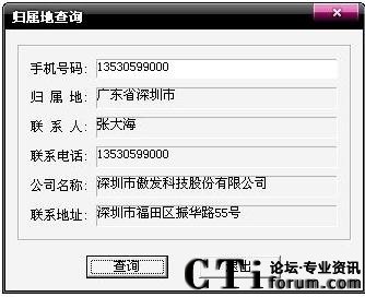 在A8電腦傳真機的電話商務通主界面,點擊歸屬地按鈕,出現(xiàn)手機歸屬地查詢界面,輸入手機號碼,點擊查詢,界面上會顯示出該手機的歸屬地,如果此號碼已在電話簿中,則界面上會同時顯示該電話對應的聯(lián)系人信息。