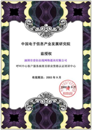 近日,中國電子信息產(chǎn)業(yè)發(fā)展研究院正式授權(quán)深圳壹佰在線網(wǎng)絡(luò)通訊有限公司為"呼叫中心客戶服務(wù)座席員職業(yè)資格認(rèn)證培訓(xùn)單位"。