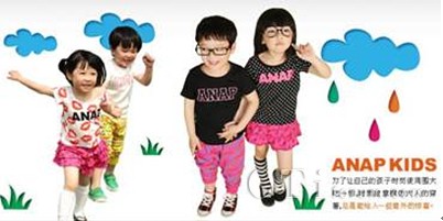 誕生于2002年的ANAP KIDS是深受日本年輕媽媽們所信賴的高端休閑童裝品牌。ANAP KIDS,是ANAP集團旗下子品牌,其總部位于日本澀谷、原宿。之所以成為多年來媽媽們信賴的品牌,是因為它無論是面料選擇,還是生產(chǎn)工藝都是在嚴格的標準指導下完成的。ANAP KIDS主要服務(wù)于3-6歲兒童,全部是采用可體現(xiàn)出棉花柔軟、輕量特點的特殊紡織線【Clean Cut Cotton®】,來提高寶寶上身后的舒適感呵護寶寶細膩的肌膚。同時,所有為NANP KIDS提供紡織生產(chǎn)的企業(yè)也持有符合纖維產(chǎn)品童高度安全性的國際規(guī)格分類 1(嬰幼兒)【Oeko-Tex規(guī)格100】認證書。