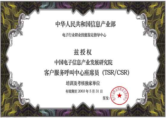 呼叫中心職業(yè)標(biāo)準(zhǔn)體系的主管單位為信息產(chǎn)業(yè)部電子行業(yè)職業(yè)技能鑒定指導(dǎo)中心;主辦單位為中國電子信息產(chǎn)業(yè)發(fā)展研究院職業(yè)技能培訓(xùn)部。
