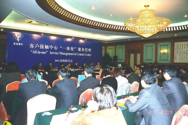 2003年2月21日,五洲賓館長江廳高朋滿座,由香港資深Call Center服務(wù)商易寶通訊服務(wù)有限公司主辦的電信行業(yè)客戶接觸中心"一體化"服務(wù)管理研討會(huì)在這里隆重舉行。全國各地的電信、移動(dòng)、聯(lián)通、網(wǎng)通等運(yùn)營商及易寶的合作伙伴共四十多家單位的Call