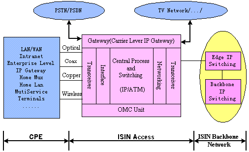 BACKBONE(骨干網(wǎng))、ISIN ACCESS(接入網(wǎng))和ISIN CPE(用戶端系統(tǒng)設備),可以構成向用戶提供語音、數(shù)據(jù)、圖像等綜合業(yè)務的統(tǒng)一的ISIN網(wǎng)絡體系。