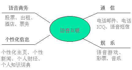 在中國(guó),電話有著最廣泛的用戶群;追求方便時(shí)尚,希望使用互聯(lián)網(wǎng)信息、郵件而不懂或不熟悉鍵盤(pán)操作的用戶占4/5;語(yǔ)音互聯(lián)網(wǎng)是電話網(wǎng)與互聯(lián)網(wǎng)的完美結(jié)合,通過(guò)語(yǔ)音互聯(lián),普通電話用戶用自然語(yǔ)言對(duì)話的方式即可獲取互聯(lián)網(wǎng)的主要服務(wù),滿足用戶任何時(shí)間、任何地點(diǎn)、任何設(shè)備獲取信息的需求。在美國(guó)、日本,語(yǔ)音互聯(lián)已成為簡(jiǎn)易終端接入互聯(lián)網(wǎng)的主要方式之一。