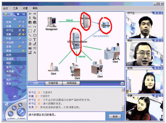 V2 Conference可以利用普通的PC機(jī)、標(biāo)準(zhǔn)的視頻攝像頭、耳機(jī)和麥克風(fēng),通過Internet或者是局域網(wǎng)進(jìn)行會議。與傳統(tǒng)的需要專用的服務(wù)器和硬件支持的視頻會議相比,企業(yè)無需投入高昂的成本,就可以實(shí)現(xiàn)高質(zhì)量的遠(yuǎn)程會議。同時(shí),V2 Conference還提供了遠(yuǎn)程會議管理的功能。