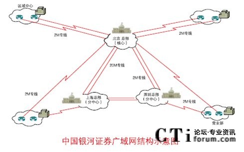 銀河證券采用二級網(wǎng)絡(luò)結(jié)構(gòu),其中一級采用三中心的冗余結(jié)構(gòu);二級為各營業(yè)部。營業(yè)部線路上采用雙專線的冗余線路方式,其中兩條線路分別屬于兩家不同的電信運(yùn)營商。營業(yè)設(shè)備上采用雙設(shè)備,保證了營業(yè)部在設(shè)備上的冗余,避免硬件設(shè)備單點(diǎn)故障,同時實(shí)現(xiàn)了業(yè)務(wù)網(wǎng)與辦公網(wǎng)的物理分離。
