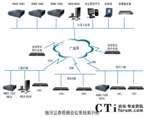 銀河證券視頻會議系統(tǒng)采用寶利通視頻會議產(chǎn)品,在銀河證券北京總部中心機(jī)房配備寶利通新一代實(shí)時媒體會議平臺 RMX 1000 MCU和高清錄播服務(wù)器;在上海和杭州也分別配置了RMX 1000 MCU;
